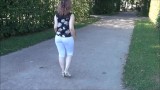 Public ass in white leggings