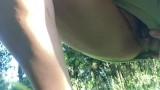 Desperate Slut Pulls Her Panties Aside And Pisses In The Garden With Her Pussy Dripping