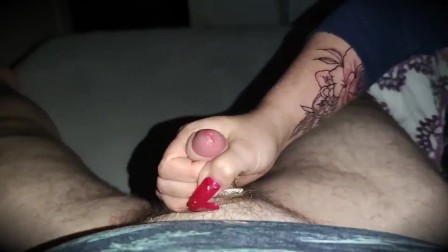 Precum dripping Handjob with Red Long Nails *cumblast*