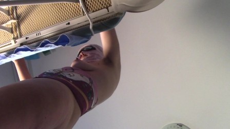 Amateur wife does housework naked. Brunette with hairy pussy, big ass.