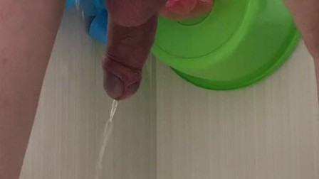 Guy pees in the bathroom rear view