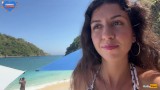 Walking with hot cum on my face on a public beach full of people - Cumwalk