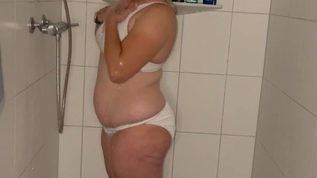 Dusche Binkini Selbstbefriedigung Durchbrause heißer Wasserstrahl feucht zittern Zucken stöhnen