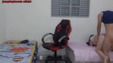 colega de quarto se troca perto do nerd, ele acaba fodendo ela na cadeira gamer.