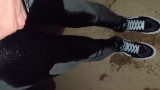 Pissing Skinny Jeans and Brand New Vans Sk8 Sneakers