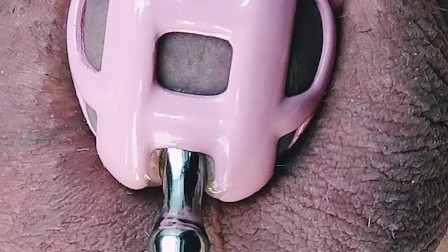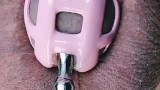 Locked Shy Racoon is fucking her urethra with steel bullet