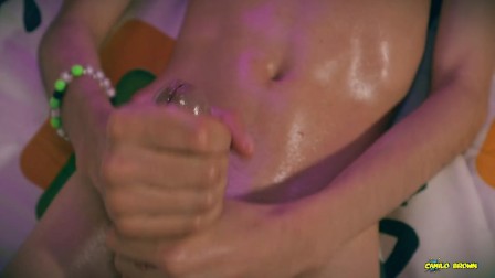 Hot Skinny Twink Magic C Jerking His Big Cut Cock with Oil Shooting a Thick Cum Load