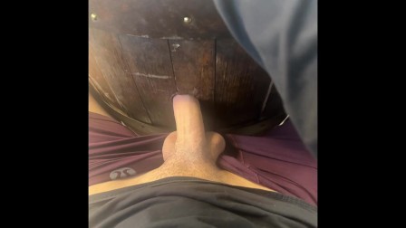 Big Dick Throbs in Wooden Whiskey Barrel Holes