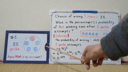 The probability of winning a 5-star item is 8%.[JapanMath]