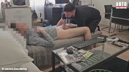Straight New Building-Neighbor With Huge Dick Tries Out His First Male Blowjob