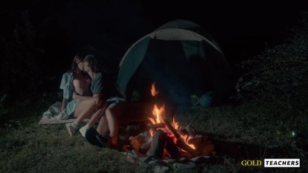 American schoolgirl has romantic sex by the night fire